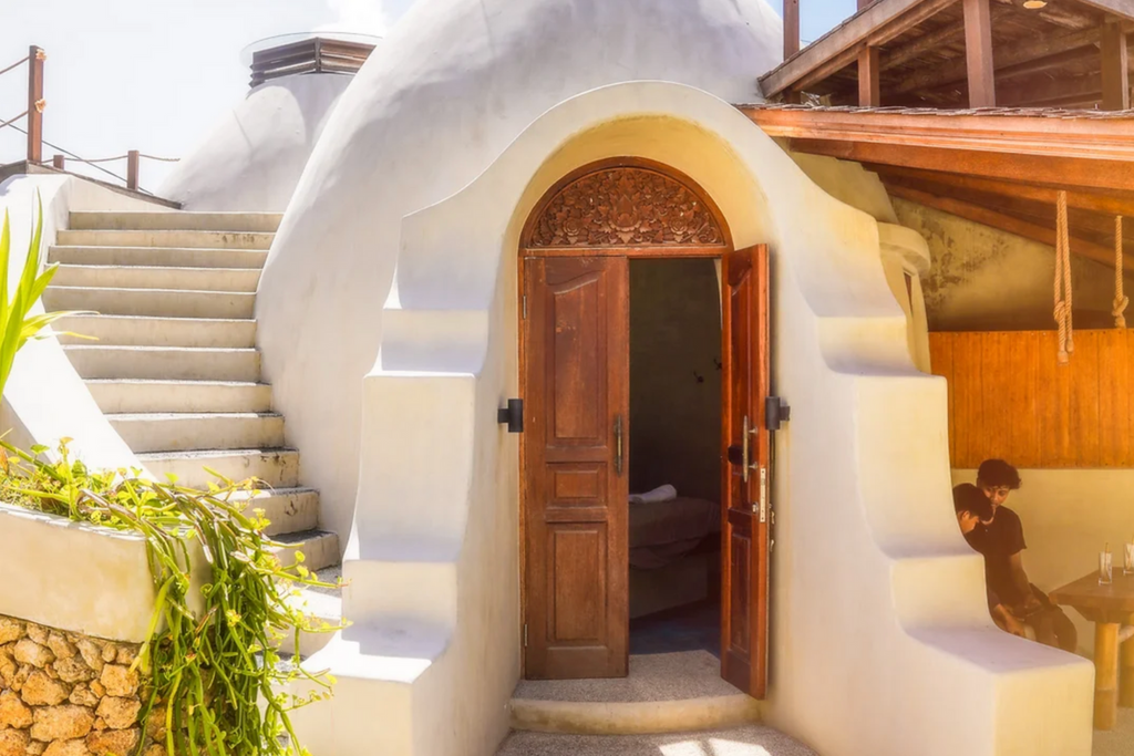 Uvnitř je Dome vybaven vším, co potřebujete pro pohodlný pobyt. Pohodlná queen size postel s moskitiérou a prostorná koupelna vybavená moderní sprchou a toaletou a vytváří pohodlí domova v klidném, minimalistickém designu.