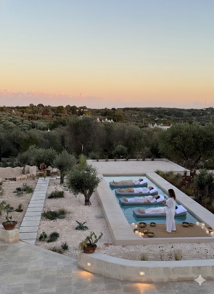 of the retreat is our Sound Healing session in the pool. Surrounded by sunlight and the gentle embrace of warm water, you’ll float effortlessly while being immersed in the soothing vibrations of Tibetan bowls, crystal frequencies, and Handpan sounds. The combination of sound and water creates a powerful sensory experience that helps release deep tension from the body, calm the mind, and open the heart. It’s a moment of complete surrender — where you are held by the elements and carried into a profound state of relaxation, balance, and bliss.